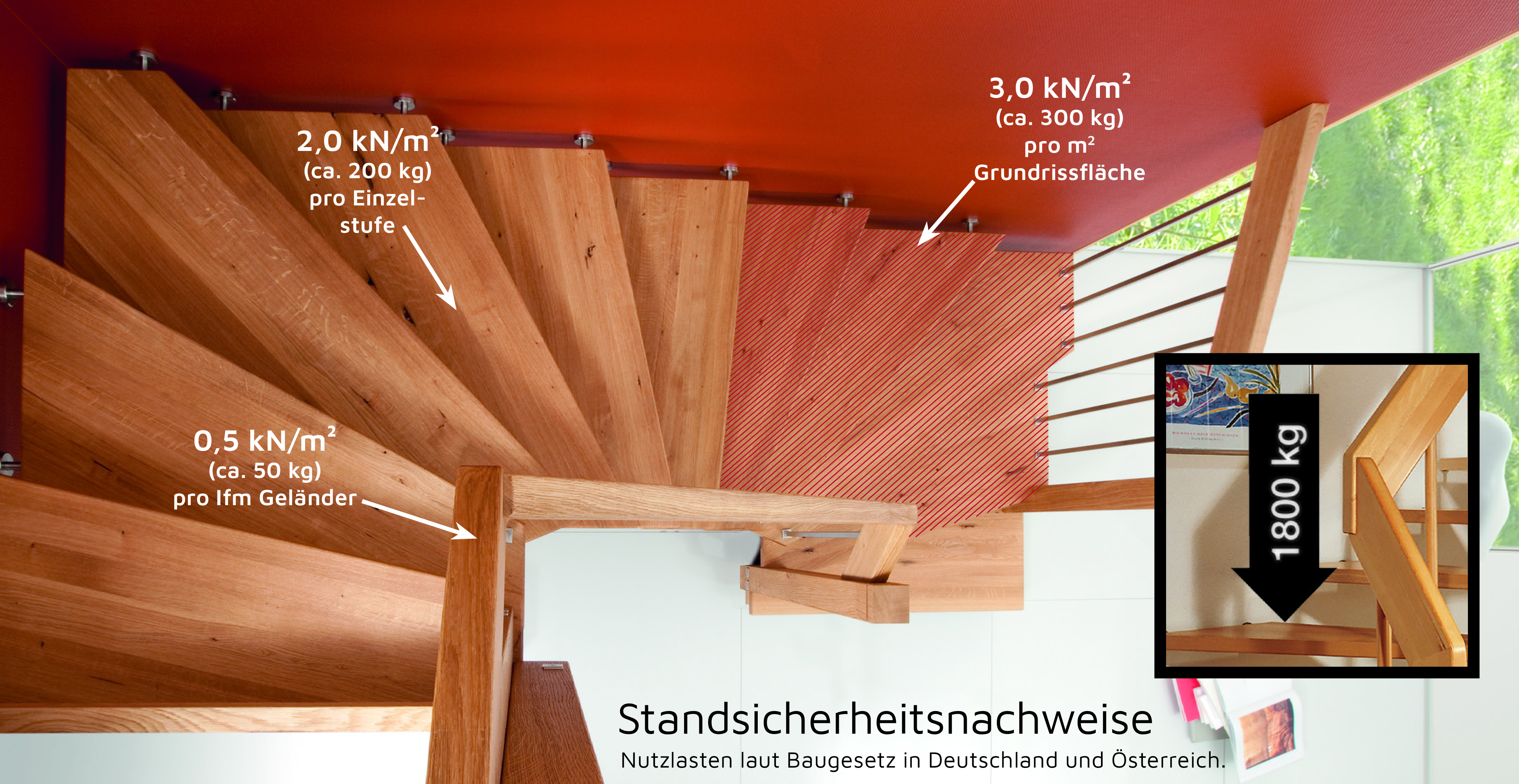 Je nach Bauweise halten einzelne Stufen hohe Punktlasten stand, während die gesamte Konstruktion eine gleichmäßig verteilte Flächenlast zuverlässig trägt. Auch Geländer und Befestigungselemente werden separat getestet, um maximale Sicherheit im Alltag zu garantieren.